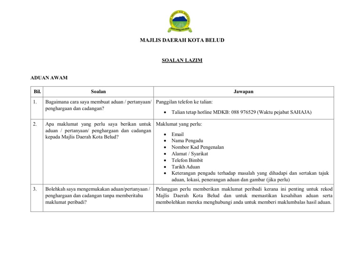SOALAN LAZIM MAJLIS DAERAH KOTA BELUD