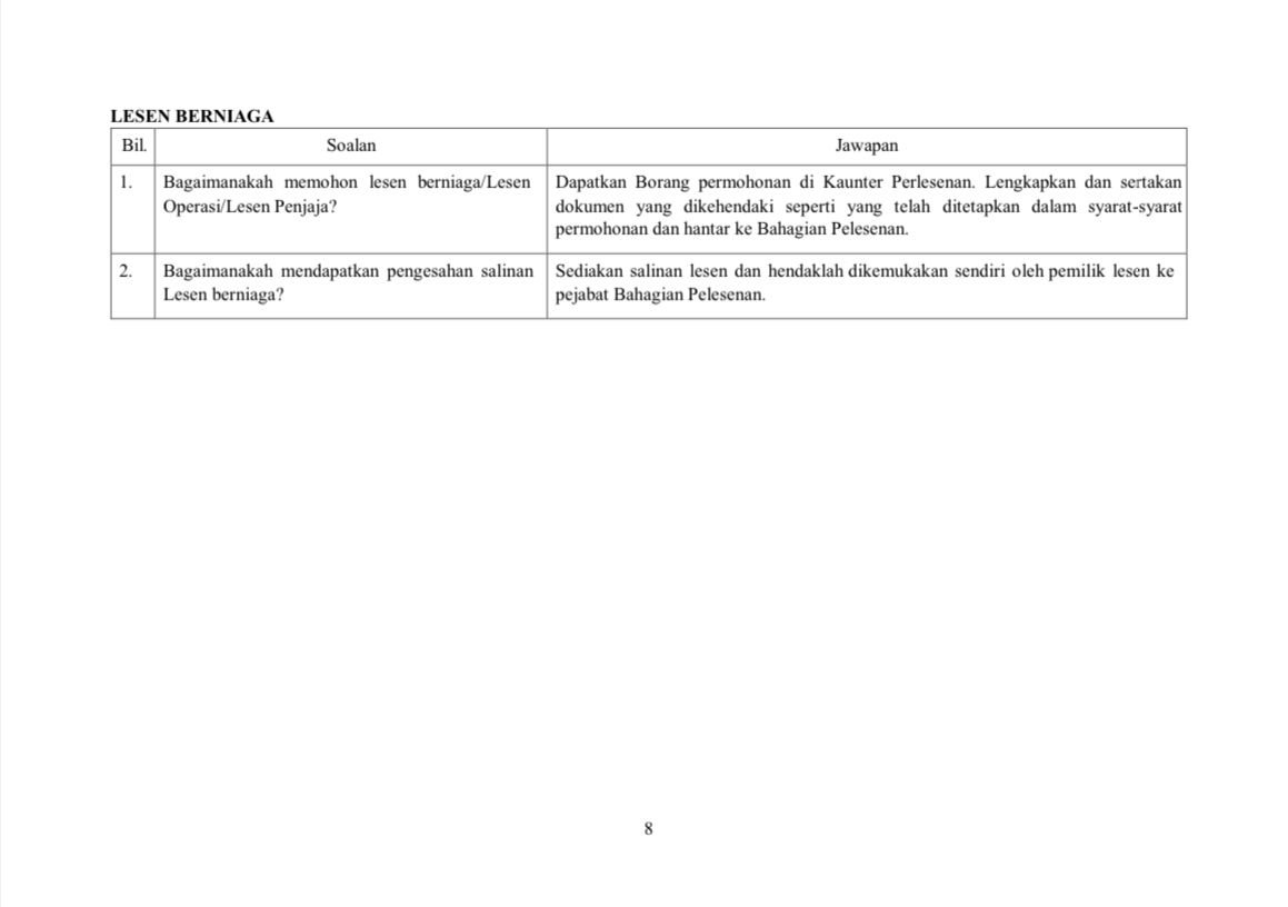 PERMOHONAN LESEN BERJAJA/GERAI/MEJA